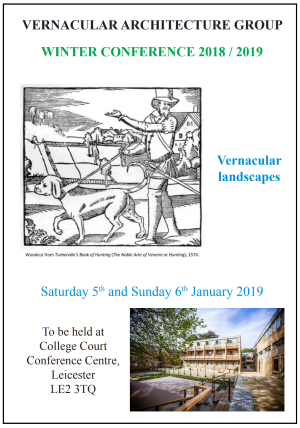 The 2019 Winter Conference of the Vernacular Architecture Group will be held at the College Court Conference Centre, Leicester University on the weekend of 5-6 January 2019. The theme is “vernacular landscapes” and the conference will aim to explore the relationship between the house and its curtilage, settlement, community and wider landscape.