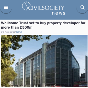 The Wellcome Trust has agreed a £506 million takeover of a London-listed developer that specialises in building huge developments in commuter hotspots on brownfield sites.