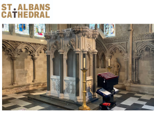 The shrine of St Amphibalus is one of Britain’s 13 medieval pedestal shrines and St Albans is the only British cathedral to house two. As part of the Cathedral’s landmark Alban, Britain’s First Saint project, funded by The National Lottery Heritage Fund and over one thousand donors, the conservation and restoration project of the shrine of St Amphibalus began in June 2019. It has been completed thanks the generous and valued support of a number of committed donors. Carried out by a team at Skillington Workshop, based in Lincolnshire, specialist conservation of the original pieces took place as well as the creation of hand-carved stone by skilled carvers to replace missing sections, before returning to rebuild the shrine in the Cathedral in 2021.