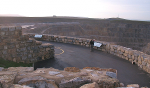 From the road protrude two snail-like shells which you can walk up and appreciate panoramic views of the Nidderdale Area of Outstanding Natural Beauty and into the enormous Coldstones Quarry.