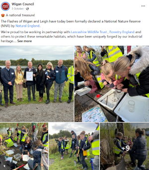 A gradual sinking of land due to mining led to the formation of lakes that became habitat for species, the press release said. The Wigan and Leigh nature reserve highlights the transfiguration of the Flashes over the past century. The designation will be the first for Greater Manchester.