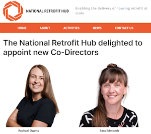 The National Retrofit Hub has announced the appointment of Rachael Owens and Sara Edmonds as Co-Directors, to take over from Russell Smith, interim Director.
