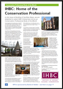 The recent issue of Building & Facilities News (B&FN) featured the IHBC as its ‘Conservation Professional Body of the Month’, focussing on the institute’s Annual School in Reading, run by our trading arm, IHBC Enterprises Ltd.