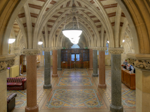A number of the historic features the building is so well known for, including the decorative ceiling panels and angels in the Great Hall, the Magna Carta mural, the extensive stained glass, painted surfaces and stonework have been painstakingly restored and cleaned.