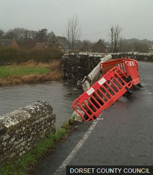 An Elizabethan bridge that features in Thomas Hardy’s novel Tess of the D’Urbervilles has partially collapsed and been washed away.
